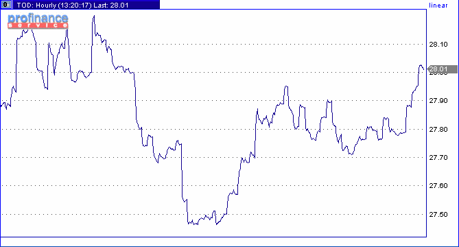 Впервые с 17 февраля 2005 г доллар США снова торгуется выше отметки 28 рублей против российской валюты. Внутренний рынок не смог сопротивляться тенденциям общемирового, к тому же и собственные поддерживающие нацвалюту факторы ослабли в последнее время. Так, акции и цены на нефть продолжают снижаться. На FX в понедельник евро упал к новому минимуму последних семи месяцев - $1.2580. На ММВБ к 13.03 мск цена сделок по доллару составляла 28.0180 рубля за доллар, что на 5 копеек выше предыдущего торгового дня, причем на 28.02, по словам дилеров, Банк России, скорее всего, в очередной раз проводил валютные интервенции для снижения волатильности колебаний курса. Суммарный объем торгов долларами на бирже ММВБ к этому часу превысил $1 млрд., из которых около $580 млн. пришлось на сделки расчетами