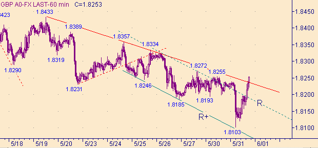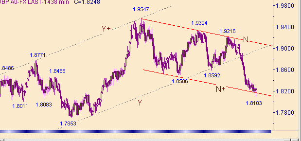 Рабочая модель - коррекция от снижения курса 1.9076(5/05/05)-1.8103(31/05/05). На данный момент - в процессе поиска удобных ситуаций для постановки позиции.