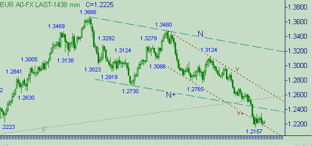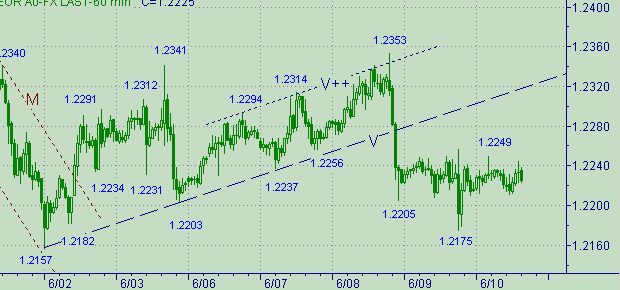 Сейчас основная рабочая модель - процесс развития второй восходящей ветки с началом от 1.2175(9/06/05). Важный технический уровень поддержки для этого движения находится на 1.2210.