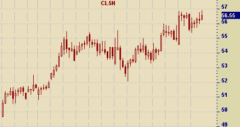 Американские акции продемонстрировали позитивную динамику на торгах в четверг, а все ключевые фондовые индексы закрылись в плюсе. Индекс широкого рынка S&P 500 и "голубые фишки" Dow достигли трехмесячных высот. Не смотря на рост цен на нефть, которые обычно оказывают давление на обыкновенные акции, поддержку рынку оказали бумаги энергетических компаний. На NYMEX стоимость июльских контрактов на light sweet выросла до 56.55 долларов за баррель, ранее протестировав двухмесячные максимумы. При этом инвесторы активно покупали акции крупнейшей американской нефтяной корпорации Exxon Mobil, которые выросли на 1.5% до 60.12. Бумаги корпорации Chevron выросли на 2% до 57.92, а акции ConocoPhillips поднялись на 2.2% до 58.60. Все три компании оказались в числе лидеров роста среди компонентов S&P 500. Рост цен на металлы в том числе и на золото также оказали позитивное влияние на настроения участников рынка. Августовские контракты на золото, торгуемые на COMEX, выросли до 437.90, что является самым высоким уровнем с 29 апреля. Бумаги производителя алюминия Alcoa Inc., являющиеся компонентом индекса Dow, выросли на 1.3% до 27.93. Поставщик золота Newmont Mining Corp. прибавил в стоимости порядка 3.5%, поднявшись до 39.72. Индексу Nasdaq поддержку оказали акции биотехнологических компаний. Фармацевтическая компания Pfizer сообщила о том, что планирует купить компанию Vicuron Pharmaceuticals Inc. за 1.9 млрд. долларов. Бумаги Vicuron выросли на 79% 28.21 и стали лидером роста на Nasdaq. Акции Pfizer выросли на 0.6% до 28.60. ProFinance.Ru - Forex News / Новости Форекс