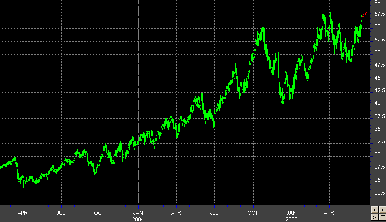 Цены на нефть приближаются к историческим максимумам. Котировки фьючерсов в ходе биржевых торгов в четверг на Нью-йоркской товарной бирже (NYMEX) достигали максимального уровня на $57.75, однако закрытие произошло на 40 центов ниже. На Международной нефтяной бирже (IPE, Лондон) цена фьючерсов на нефть Brent на август в четверг поднялась на $0.98 - до $56.22 за баррель. Сырье растет, несмотря на удорожание доллара. Аналитики в обоснование причин биржевого спроса на нефть ссылаются на обеспокоенность участников рынка возможной нехваткой сырья для покрытия нужд в топливе в четвертом квартале 2005 года, когда спрос достигнет пика. Решение ОПЕК о повышении квот на добычу до 28 млн. баррелей, по мнению аналитиков, не отразится на реальной ситуации на рынке, так как картель в настоящее время уже превышает новые квоты. По данным ОПЕК, страны-члены должны производить около 30.6 млн. баррелей в сутки (б/с) для удовлетворения все возрастающих потребностей в топливе. В мае ОПЕК добывала 28,1 млн. б/с. Резервные мощности оцениваются в 1.6 млн. б/с. Решение об увеличении с 1 июля квот ОПЕК на добычу на 500 тыс. б/с -до 28 млн. б/с - было принято 15 июня на встрече картеля в Вене.