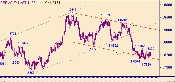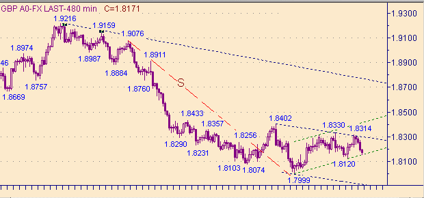 Вспомним, что вчера мы писали, что есть признаки того, что коррекция от снижения курса вдоль линии S на рис. 2 может уже и закончилась. А следовательно предполагаем, что процесс поиска начала новых трендов не за горами. Ждем достижения уровня 1.8115, а далее пытаемся рассмотреть признаки или намеки на начало новых трендов.