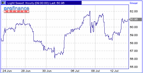 Рост нефтяных котировок возобновился во вторник в ожидании урагана "Эмили" в Мексиканском заливе. Правительство США сообщило о закрытии более половины добывающих мощностей в регионе. Цена фьючерсов на август на нефть WTI на NYMEX 12 июля поднялась на $1.70 - до $60.62 за баррель. По прогнозам аналитиков, уровень запасов бензина на неделе с 25 июня по 1 июля упал на 1 млн. баррелей с 215.3 млн. баррелей. При этом спрос на бензин в стране на 2.7% выше уровня аналогичного периода 2004 года, сообщает министерство энергетики США. Ожидается также падение запасов нефти на 2.8 млн. баррелей. Сегодня утром нефть торгуется в районе $60.90 за баррель.