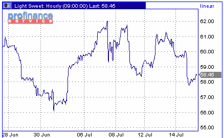 Цены на нефть резко обвалились в четверг - почти на 4% на фоне фиксации прибыли. Цена фьючерсов на август на нефть WTI на NYMEX 14 июля снизилась на $2.21 (на 3.7%) - до $57.80 за баррель. Это наибольшее падение котировки за последние 2 недели. По словам некоторых трейдеров, обеспокоенность рынка возможными сбоями в поставках в связи с ураганом "Эмили" утихает, так как метеорологи предупреждают, что стихия минует нефтяные объекты у побережий Техаса и Луизианы. В то же время часть инвесторов опасаются, что ураган может изменить направление. Синоптики сообщают о приближении стихии к побережью Мексики. Сегодня утром нефть выросла на $0.70 до $58.50 за баррель.