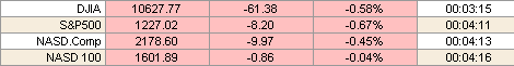 Американские акции оказались под давлением на торгах в четверг и закрылись в отрицательной зоне, на фоне новых взрывов в Лондоне. Этот фактор стал единственным негативом, поскольку все остальные события носили позитивный характер. Однако его отрицательное влияние оказалось велико, поскольку повторные террористические действия в одном и том же месте говорят о том, что, возможно, мы теперь увидим целую серию подобных событий. Ключевыми проигравшими на этих беспокойствах традиционно стали бумаги авиакомпаний. Акции Delta Air Lines упали на 8.95% до 3.56, не смотря на то, что в квартальном отчете компания рапортовала о меньших, по сравнению с прогнозами потерях. Индекс авиакомпаний American Stock Exchange упал на 2.5 процента, даже не смотря на то, что цены на нефть продолжили снижение. На NYMEX сентябрьские фьючерсы на light sweet снизились до 57.25 долларов за баррель. Среди чувствительных к состоянию экономики компаний, индексу Dow оказали поддержку акции Alcoa Inc., которые подорожали на 0.32% до 28.63.