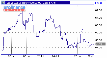 Цены на нефть снизились в четверг после сообщений о взрывах в Лондоне, совпавших с распродажей фьючерсов на печное топливо и бензин. Снижение запасов нефти в США на минувшей неделе, оказавшееся ниже прогнозов аналитиков, также повлияло на снижение цен. Цена фьючерсов на сентябрь на нефть WTI на NYMEX 21 июля снизилась на $0.89 - до $57.13 за баррель. Сегодня утром нефть выросла на $0.37 по сравнению с итоговой котировкой четверга и составляет $57.5 за баррель. Нефть дорожает в результате перехода Китая к плавающему курсу юаня, что привело к снижению стоимости импорта, оплачиваемого в американской валюте. Если же говорить о долгосрочных перспективах, ревальвация может ослабить конкурентоспособность Китая, повлиять на темпы роста и экономики и таким образом привести к падению спроса на нефть.