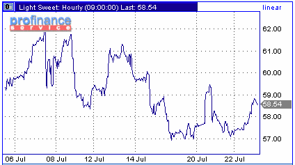 Цены на нефть мало изменились на торгах в понедельник. Стоимость фьючерсов на сентябрь на нефть WTI на NYMEX 22 июля поднялась на $1.52, или на 2.7% до $58.65 за баррель. Нефть дорожала в результате перехода Китая к плавающему курсу юаня, что привело к снижению стоимости импорта, оплачиваемого в американской валюте. Цены растут на фоне ожиданий увеличения спроса на нефть со стороны Китая, который является вторым крупнейшим потребителем топлива в мире после США. Как ожидается, спрос на нефть в Китае в 2005 году увеличится на 6.1% по сравнению с 2004 годом.
