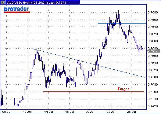 Техническая картина в паре AUD/USD остается слабой, поэтому потенциал преодоления 0.7570 весьма высок, говорит Роберт Клейтон, технический аналитик из Westpac. Эксперт утверждает, что пробитие вышеназванной отметки откроет цель на 0.7460/65. Он предлагает активировать короткие позиции в данной паре на любых попытках роста вплоть до верхней границы диапазона на 0.7650. ProFinance.Ru - Forex News / Новости Форекс