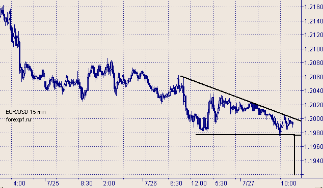 15:24 Xerof: Крупные инвесторы думают сейчас о другом: Завтра ВВП и стоимость раб силы, конец месяца, 01 августа ISM, и тут же NFP- кол-во раб мест, 09 заседание и повышение ставки. Если и смотрят то на самый лоу 1.1865...