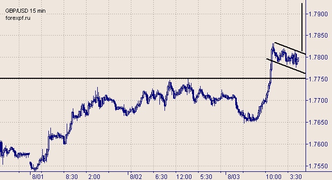 Фунт сформировал бычий флаг, у него острая вершина и бычье соотношение углов последних движений - значит в ближайшее время мы обновим максимум. Если трейдеры решат ждать для этого решение Банк Англии по ставкам завтра, мы, вероятно, для начала протестируем поддержку, которая начинается ниже отметки $ 1.7750. Половина древка флага дает нам в качестве цели уровни немного выше 79 фигуры. Возможно, ближе к уровням $ 1.80 (возможно, выше) силы у фунта окончательно иссякнут. Дмитрий Полин ProFinance.Ru - Forex News / Новости Форекс