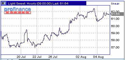 Цены на нефть снова пошли вверх в четверг на фоне ралли фьючерсов на бензин, вызванного опасениями снижения поставок и увеличения числа проблем на НПЗ. Стоимость фьючерсов на сентябрь на нефть WTI на NYMEX 4 августа также выросла на $0.52 и по итогам торгов составила $61.38 за баррель. Нефть продолжает расти второй день подряд в связи с перебоями на американских НПЗ и опасениями, что тропические ураганы могут помешать компаниям обеспечить спрос на нефть во втором полугодии. Сегодня утром нефть выросла на $0.22 по сравнению с итоговой котировкой четверга и составляет $60.9 за баррель.