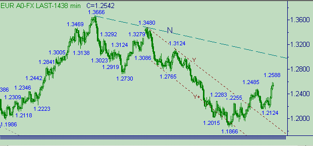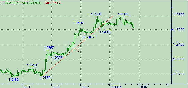 Так, помоему начинается любимая игра трейдоров, чья система лучше, чей прогноз "вернее"... Хоть ранее я и написал свое видение ситуации, всегда придерживаюсь принципа соглашаться с рынком. Мое согласие с рынком - это не тех.анализ. Тех.анал - это уже принятое решение, это уже АБЗАЦ. Я стремлюсь найти гармонию с рынком (Швагер Новые маги рынка Ренди Маккей) и если мои мысли верны, то рынок будет их подтверждать. На сегодня считаю технически интересным только недельные графики (циклы), в отношении уровней считаю , что 1.2600 будет пробиваться даже на такой перепроданности, хотя уровень коррекции возможен до 1.2380. Причины падения доллара считаю не только из-за высчитынного ущерба в 100 милиардов (10 фигур движения), но и риска уменьшения % ставок и парадаксальности рынков в отношении выбора хранения валют (в пользу евро диферсификация ЦБ своих валютных резервов). Хочу заметить, что эти факторы будут лишь драйверами для принимаемых РЫНКОМ решений. П.С. Выше написаное поптка перейти на долгосрочные прогнозы. Среднесрочные и краткосрочные освоены. 20:32 Lvovich: Ксероф, считаю, что основное движение драйвером которого был ураган прошло...отыграли,...завтра 26 или 2650 не вопрос, могут...правда не пойму на чем...а так, не на чем... Выборы в Германии могут подпортить настрой по евро...