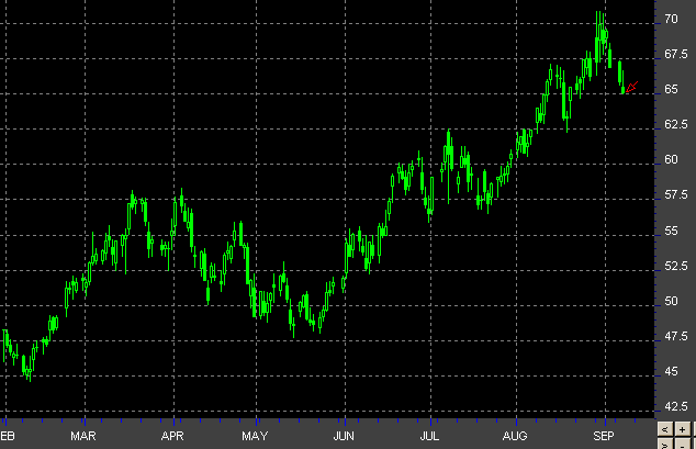 Цены на нефть формируют разворотную модель "голова и плечи" на дневном графике. Проектируемая линия основания при горизонтальном построении проходит через уровень $ 62.5/баррель. Левое плечо расположено немного ниже уровня $ 67.5/баррель, голова - в районе абсолютных максимумов, то есть немного ниже уровня $ 71/баррель. Если модель будет сформирована и сработает, мы получим зачатки окончания многолетнего аптренда. Отмеренный ход может составить $ 8.5, а начальной целью может выступить отметка в $ 56/баррель. Дмитрий Полин ProFinance.Ru - Forex News / Новости Форекс