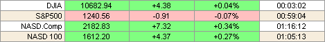 На торгах в понедельник голубые фишки Dow и Nasdaq смогли продемонстрировать позитивную динамику, в то время как индекс широкого рынка S&P 500 остался в красной зоне. Поддержку технологическим акциям оказали сообщения о планируемых слияниях со стороны таких компаний, как Oracle Corp. и eBay Inc., подчеркивающие сохраняющуюся деловую активность в секторе. Интернет-аукцион eBay сообщил о приобретении телефонной интернет-компании Skype за 4.1 млрд. долларов. Акции Ebay выросли в своей курсовой стоимости на 0.8% до 38.94. Бумаги корпорации Oracle вырсоли на 1.6% до 13.49, после сообщения о покупке конкурирующей компании по производству программного обеспечения Siebel Systems Inc. за 5.85 млрд. долларов. Позитивные настроения инвесторов также распространились и на другие крупные интрнет-компании. Акции Google Inc. и Yahoo Inc. выросли на 3.6% до 1.3% до 309.74 и 33.91 соответственно.
