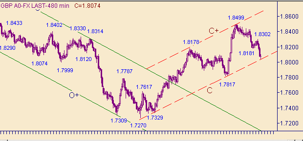 В текущей ситуации наиболее симпатичной выглядит тактика поиска уровня начала коррекционной формации от снижения с началом от 1.8302(14/09/05). Ценовой интервал для поиска - 1.8020-1.8050. Мы же сами опять не видим удобного момента для открытия позиции. В нашем представлении нисходящее движение не выглядит как приближающееся к завершению, но и для постановки позиции на продажу так же не видим удобных уровней.