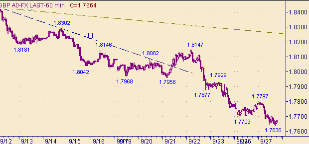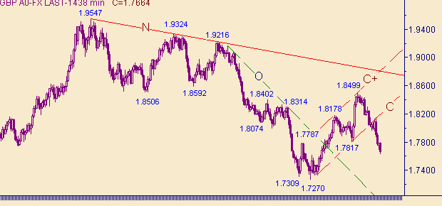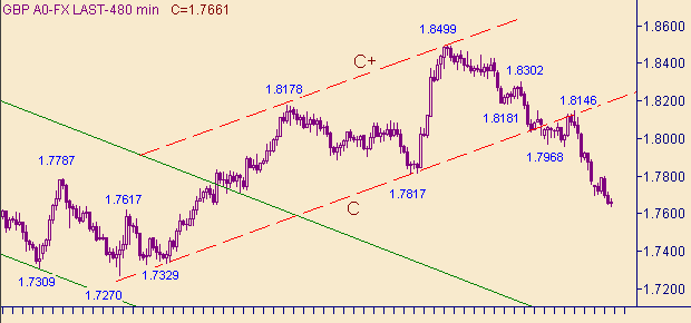 Продолжаем дивиться down-прыти этой пары. Предполагаем, что курс продолжает свое победное понижение в рамках третьей нисходящей ветки в движении с началом от 1.8427(12/09/05): первая ветка - 1.8427(12/09/05)-1.8181(13/09/05); вторая - 1.8302(14/09/05)-1.7958(21/09/05); третья началась от 1.8147(22/09/05). В рамках этой третьей нисходящей ветки курса прошагал уже два поддвижения и сейчас пытается оформить третье: первое - 1.8111-1.7877 длина 234п.; второе - 1.7929-1.7703 длина 226п.; третье началось от 1.7797. В случае, если третье поддвижение окажется примерно равное по длине предыдущим двум имеем целевую область в пределах интервала 1.7570-1.7590. Сейчас рынок пытается определиться с локальным дном, соответствующего сегодняшнему минимуму, равному 1.7636. При рассмотрении данной пары для выбора торговой тактики имеем все те же проблемы, что и для пары евро/доллар: "размытость" целевых уровней в перекрывающиеся интервалы делает проблематичным рассмотрение постановки позиции как на продажу так и на покупку. Далее мучаться и мучить Вас не будем - будем ожидать более понятных для нас ситуаций на графиках.