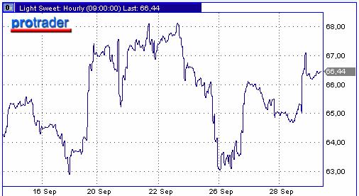 Цены на нефть резко выросли в среду на фоне остановки добычи сырья в Мексиканском заливе. Ежедневные потери в нефтедобыче оцениваются в 1.53 млн. баррелей в сутки. Участники рынка опасаются, что процесс восстановления производства затянется. По данным министерства энергетики США, на неделе с 17 по 23 сентября запасы нефти сократились на 2.4 млн. баррелей - до 305.7 млн. баррелей. При этом запасы бензина выросли на 4.4 млн. баррелей - до 199.8 млн. баррелей. Стоимость нефтяных фьючерсов с поставкой в ноябре на NYMEX 28 сентября подскочила на 2% до $66.35 за баррель. Сегодня на электронных торгах котировки практически не изменились.