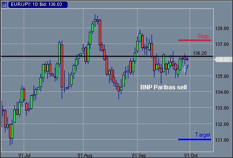 Валютные стратеги из BNP Paribas заняли короткую позицию в паре евро/йена. Продажа была активирована на 136.20. Стоп-лосс установлен на 137.20. Среднесрочной целью этой короткой позиции является уровень 131.00. Ближайшая цель тестирования отмечена на 134.55. Ее преодоление даст "зеленый свет" снижению к 133.55 и далее на 130.65. ProFinance.Ru - Forex News / Новости Форекс