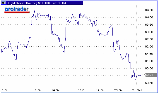 Цены на нефть резко снизились на торгах в четверг на фоне ожиданий того, что ураган "Вилма" обойдет основные нефтедобывающие районы в Мексиканском заливе, а также в связи с прогнозами более медленного роста спроса на топливо в США в условиях замедления экономического роста. Стоимость нефтяных фьючерсов с поставкой в ноябре на NYMEX по итогам торгов 20 октября снизилась на $1.38 - до $61.03 за баррель, цена декабрьских фьючерсов составила $60.02 (снижение составило $1.49). Сегодня утром нефть торгуется в районе $60.00 за баррель.