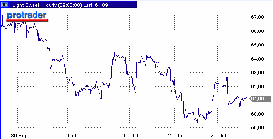 Цены на нефть продолжают рост на опасениях, что ущерб, нанесенный ураганами нефтедобывающим платформам в Мексиканском заливе, может привести к недостатку поставок топлива в США в зимний период. Стоимость нефтяных фьючерсов с поставкой в декабре на NYMEX по итогам торгов четверга, 27 октября, выросла до $61.09 за баррель (+$0.43). Сегодня утром нефть торгуется в районе $61.20 за баррель.