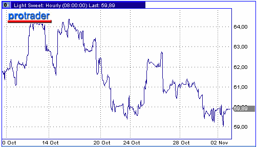 Цены на нефть сегодня утром стабилизировались после снижения в среду. Стоимость нефтяных фьючерсов с поставкой в декабре на NYMEX 2 ноября снизилась на $0.10 - до $59.75 за баррель. Цена нефти приблизилась к минимуму за три месяца. Сегодня утром нефть торгуется в районе $59.90 за баррель. Министерство энергетики США сообщило о меньшем, чем ожидалось, сокращении запасов печного топлива на неделе с 22 по 28 октября. "Данные EIA в целом давят вниз. Рост запасов нефти был большим, чем ожидалось, а снижение дистиллятов - меньшим", - сказал аналитик Refco Group Маршалл Стивз.