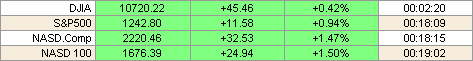 Американские акции продемонстрировали позитивную динамику на торгах в четверг на фоне сильных корпоративных результатах и прогнозах доходов. Акции Network Appliance Inc. выросли на 4.81% до 29.61 после того, как в опубликованном отчете квартальная прибыль превысила прогнозы аналитиков. Бумаги Intuit Inc. подпрыгнули на 7.74% до 53.01. Компания рапортовала в своем отчете об убытке меньше ожиданий, а также повысила прогноз доходов в течение всего года. Акции Google выросли на 1.33% до 403.45. Максимум был зарегистрирован на 403.81. Бумаги конкурирующей компании Yahoo выросли на 5.47% до 42.23. Предварительные квартальные результаты Brocade Communications Systems Inc. также оказались выше прогнозов Wall Street, что позволило акциям этого производителя программного обеспечения для компьютерных сетей передачи данных вырасти на 3.86% до 4.31. Давление на голубые фишки Dow оказали бумаги Altria Group Inc., которые упали на 2.83% до 71.80 после того, как аналитики Goldman Sachs & Co. понизили инвестиционную оценку акций до "на ровне с рынком" с предыдущего "выше рынка". ProFinance.Ru - Forex News / Новости Форекс