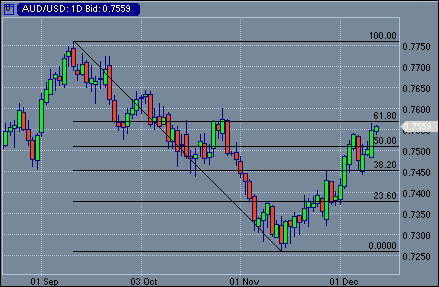 Здесь стоит также упомянуть и ситуацию с золотом, которое проверило на прочность максимумы марта 1981 года на 540.90. Однако ожидания в отношении дифференциала ставок играют определяющую роль и в этом не трудно убедится, если внимательно оценить карту валютного рынка. Сразу отметим, рост канадской валюты, которая практически в единственном числе с начала сентября держала в горизонтальном коридоре против доллара и первой возобновила укрепление против доллара. Отличное состояние экономики государства, экспортирующего энергосырье, в совокупности с ожиданиями продолжения повышения процентной ставки стали тому главной причиной. Далее оценим степень коррекции разных валют против доллара после ослабления, которое наблюдалось с начала сентября текущего года. Мы можем заметить, что в рамках коррекции австралийский доллар почти достиг уровня восстановления Фибоначчи 61.8 процента. Стерлинг протестировал уровень Фибоначчи 50 процентов. При этом единая европейская валюта еще даже не проверяла на прочность уровень 38.2 процента, а японская йена пока еще далека от тестирования уровня 23.60 процента.
