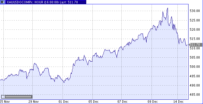 Спекулянты золотого рынка продолжают ажиотажно фиксировать прибыль, в результате чего цены снова снижаются. Продажи, начавшиеся в среду в Азии, продолжаются и в Европе. Металл потерял уже 5 % с достигнутого в понедельник максимума почти 25 лет на отметке $540,90 за унцию, когда рынок поддержал спрос со стороны Японии. Стоимость других драгоценных металлов также снизилась, причем платина достигла минимума трех недель, а серебро опустилось до минимальной отметки за последние две недели. Скачок цен на золото на $50 за первые 12 дней декабря многих застал врасплох, но большинство аналитиков и трейдеров ожидали отступления и восприняли его как коррекцию. "Недавнее поведение цен не было устойчивым, и как только встряска на рынке закончилась, можно ожидать возвращения к более умеренному прогрессу в 2006 году", - сказал Пол Меррик из RBC Capital Markets. По мнению некоторых участников рынка, цены могут снизиться до $475, после чего на рынке может вновь появиться высокий спрос. "(Цены) вряд ли упадут так сильно, но это хорошая фундаментальная поддержка, и я уверен, что в первые месяцы 2006 года золото будет, скорее всего, колебаться между $500 и $525 за унцию", - сказал Крейг Джеймс из Commonwealth Securities в интервью Reuters.