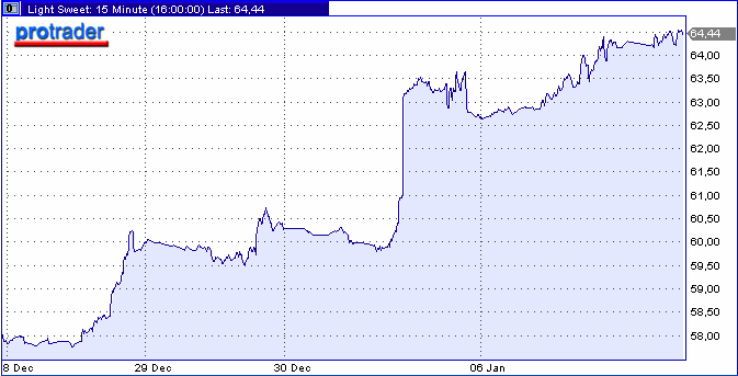 Цены на нефть растут в течение европейской сессии в понедельник на фоне спроса со стороны хеджфондов, которые покупают сырье, наблюдая ослабление позиций доллара, сообщает Reuters. В 16.10 мск американская легкая нефть в системе электронных торгов Nymex с поставкой в феврале поднялась в цене на 25 центов до $64.47 за баррель. "Это опять хеджфонды", - сказал один из участников рынка". Фонды, перераспределяющие средства в различные классы активов в первом квартале, проявляют большой интерес к энергетическим рынкам, отметили дилеры. По их словам, если стоимость барреля американской легкой нефти превысит $65, то вскоре котировки могут подняться до рекордного уровня $70.85 за баррель. Доллар в понедельник опустился до трехмесячного минимума к иене, что усилило привлекательность рынков нефти и золота.