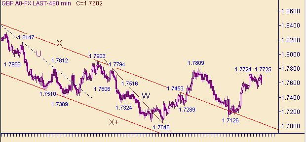 Ситуация точно такая же как и для пары евро/доллар - продолжение формирования коррекционной формации. Здесь так же отводим для этой коррекции ещё один торговый день. А далее ожидаем продолжения восхождения с началом от 1.7126(28/12/05) с перспективой атаки на область 1.7870-1.7900.