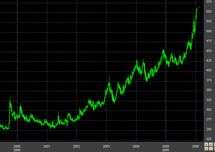 Дилеры, опрошенные агентством Reuters, говорят, что инвесторы и фондовые менеджеры скупают драгметаллы из-за высоких цен на энергоносители, геополитической напряженности и прогнозов снижения курса доллара. С начала года золото подорожало на 9 %, вынудив инвестиционные банки и инвестиционные дома резко повысить прогноз стоимости металла на ближайшие два года. К 16.38 мск тройская унция золота стоит $ 562.00.