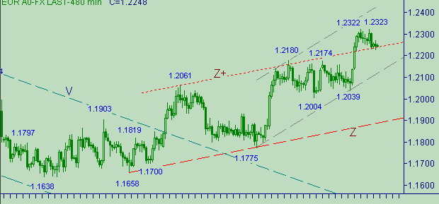Выход курса ниже 1.2220 может спровоцировать или затягивание коррекции ещё на два торговых дня (пока не закончится аналогичная коррекция на паре фунт/доллар) или уже новый down-тренд с целевым интервалом 1.2100-1.2140. А так - как всегда есть над чем подумать.