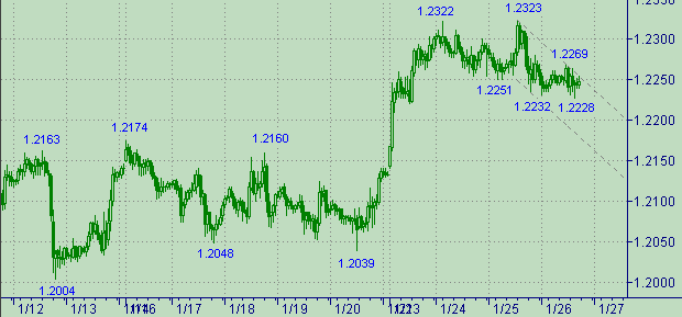 Open=1.2278 High=1.2323, Low=1.2232, Close= 1.2240.