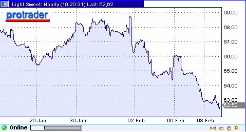 Как сообщило минэнерго США, запасы нефти за неделю, закончившуюся 3 февраля 2006 года, снизились на 300.000 баррелей до 320.7 миллиона баррелей (м/б), запасы бензина, напротив, выросли на 4.3 м/б до 223.3 м/б, запасы дистиллятов упали на 300.000 баррелей до 136 м/б, а запасы печного топлива - на 1.6 м/б до 58 м/б. По данным API, запасы нефти в США на прошлой неделе, напротив, снизились - на 2.7 м/б до 321.49 м/б, запасы бензина выросли на 2.8 м/б до 219.034 м/б, запасы дистиллятов упали на 1.2 м/б до 136.276 м/б, а запасы печного топлива - на 232.000 до 58.599 м/б. Аналитики, опрошенные Reuters, ожидали рост запасов нефти на 300.000 баррелей, дистиллятов - на 200.000 баррелей, бензина - на 1.9 м/б. Цены на нефть были волатильны после выхода данных, поднявшись сначала к $ 63.25 за баррель, а потом обновив минимумы последних недель на $ 62.30 за баррель. Очень сильная поддержка расположена в районе уровня $ 62 за баррель. Ее прорыв открывает путь $ к 56 за баррель