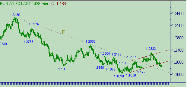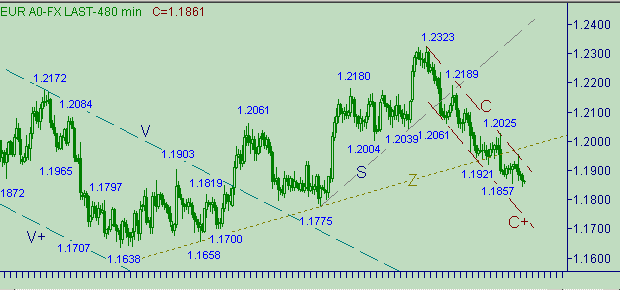 Евро/доллар послушно отскочили от линии C на рис. 3. Сегодня евро/доллар пытаются выйти ниже 1.1850. Выход ниже этого уровня не есть хорошо для "Быков", т.к. в этом случае создаются технические предпосылки для формирования расширенной третьей нисходящей ветки в канале C-C+, если полагать, что структура этого канала следующая: первая нисходящая ветка - 1.2323(25/01/06)-1.2061(30/01/06); вторая - 1.2189(31/01/06)-1.1921(8/02/06); можно предполагать, что третья ветка началась от вчерашнего максимума, равного 1.1954. Так вот первое down-движение в этой третьей ветки уже сформировано: 1.2025(10/02/06)-1.1857(14/02/06). В случае дальнейшего понижения курса евро и, соответственно повышения доллара, имеем следующий списочный состав технических целевых интервалов и уровней: 1.1800-1.1820, 1.1760-1.1780, 1.1680-1.1690, 1.1590. Чем больше у евро/доллара формируется вложенных нисходящих движений тем более размыты целевые уровни, превращающиеся в интервалы. Вы спросите: "Так в чем проблема?". Мы Вам ответим: "Проблема в том, что если нисходящее движение 1.2025(10/02/06)-1.1857(14/02/06) является окончанием самого канала C-C+, (т.е. от 1.1857(14/02/06) может начаться формироваться коррекционная формация), то в рамках этой коррекции цена может запросто протестировать область вблизи 1.1800. И не только вблизи 1.1800, но и вблизи 1.1760. Таким образом, получаем, что сложно нам будет предполагать в каком качественном состоянии мы находимся: или в процессе нисходящего поддвижения или коррекционной формации.". Вот и думай теперь о перспективах постановки позиции. Захочешь поставить позицию в down-движении, а попадешь в коррекцию. А как только попробуешь открыться в модели коррекционной формации так тут же обнаружишь, что нисходящий тренд в самом разгаре. Как вариант - открывать сразу две позиции под две модели изменения цены, но тогда получим бестолковую ситуацию под названием Замок (или Lock) с двумя встречными позициями, без гарантий, что рынок придумает ещё и третий вариант - типа up-гэпа пунктов на 70.