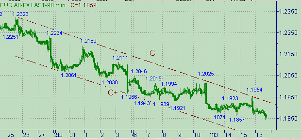 Open=1.1920, High=1.1954, Low=1.1867, Close= 1.1885.