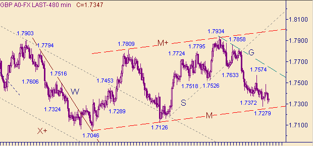 Вроде бы в модели продолжения снижения курса можно от уровня 1.7370 открываться вниз, но не будем этого делать. Ждем подтверждений от рынка.