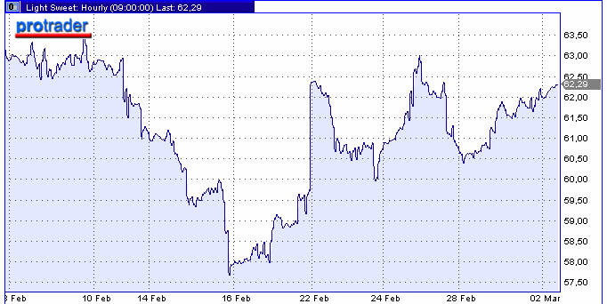 Цены на нефть выросли в среду на фоне роста геополитической напряженности. При этом рост произошел даже несмотря на хорошие данные по нефтезапасам в США. Апрельские фьючерсы на нефть WTI выросли в среду на 49 центов до $61.90 за баррель. Сегодня утром нефть торгуется в районе $62.30 за баррель. Вчера появились новые сообщения об угрозах нигерийских боевиков, которые намерены захватить нефтяные объекты в стране. Нефтезапасы в США выросли на 1.6 млн. барр. до 328.3 млн. Рост происходит уже третий месяц подряд. Запасы бензина выросли на 0.3 млн. барр. до 225.9 млн.
