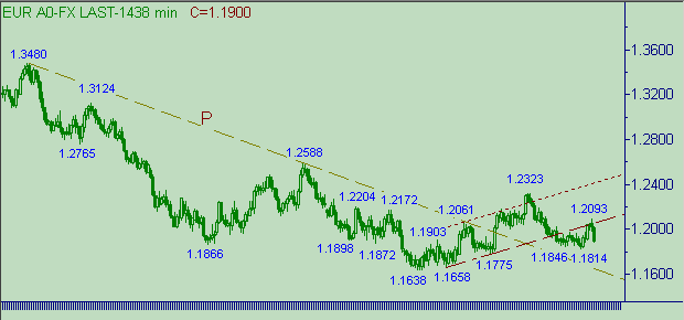 На рис. 3 видим, что восходящее движение вдоль линии D (с началом от 1.1824(27/02/06)) закончилось. Самое время рынку сделать коррекционное отступление от Up-движения. Что он и делает, этот самый рынок. Наступило и для нас время попробовать что то изменить, например подумать, что же представляет из себя восхождение евро/доллара вдоль линии D на рис. 3. Смотрим на рис. 2 и предполагаем, что это восхождение есть составная часть коррекции от снижения курса в нисходящем канале C-C+ на рис. 2. Другая симпатичная перспектива у роста 1.1824(27/02/06)-1.2093(6/03/06) стать первой часть нового up-тренда, естественно с началом от 1.1824(27/02/06). Смотрим на рис. 2 более внимательно и видим ещё один возможный вариант исторический миссии роста 1.1824(27/02/06)-1.2093(6/03/06). Это возможная миссия связана с ростом курса вдоль линии Z на рис. 2. Если принять этот рост за основу, то тогда от 1.2323(25/01/06) может начаться коррекционная формация от up-движения вдоль линии Z на рис. 2. И тогда нисходящий канал C-C+ на рис. 2 является только первой частью этой коррекционной формации, а сама эта формация находится в расцвете сил. Вывод простой: как всегда мы в курсе всего того, что может или уже произошло или даже никогда не произойдет, но могло произойти. От констатации истины перейдем к оценкам перспектив изменения курса и выделения важных ценовых областей.