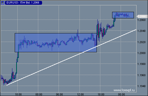 Краткосрочные перспективы позитивны для единой европейской валюты, поэтому в ходе торгов в Азии курс евро/доллар может продолжить восходящее движение. Опубликованные в среду TICS data внесли определенный пессимизм в перспективы цикла повышения ставок ФРС США, поэтому спекулянты могут предпринять попытку атаки фигуры 1.2100. Не исключено, что в случае достижения своей цели многие из них зафиксируют прибыли. Техническая картина подтверждает возможность такого развития событий. Мы видим характерные для данной пары горизонтальные коридорные консолидации после каждого роста. Стоит отметить, что продолжительные консолидации, которые в итоге завершаются восходящим движением, в своей итоговой стадии тестируют нижнюю границу. Поэтому не исключено, что прежде чем протестировать 1.2100, курс данной пары вернется в область 1.2050/40. ProFinance.Ru - Forex News / Новости Форекс