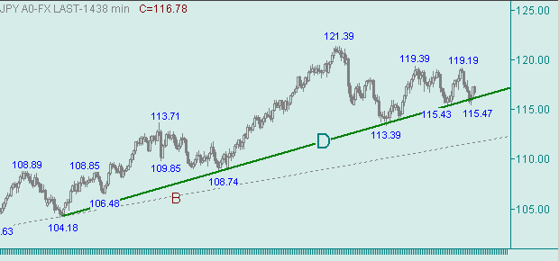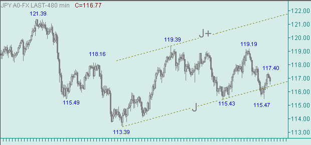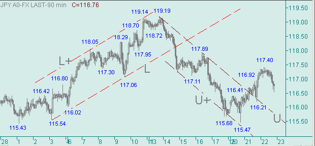 От уровня 117.40 "Медведи" смогли отбить up-наступление. Сейчас рынок пытается как минимум сформировать вторую (нисходящую) часть коррекции от снижения в канале U-U+ на рис. 3, а как максимум - продолжение нисходящего движения с началом от 119.19(13/03/06). Для down-варианта перечисляем целевые уровни: 116.60, 116.00, 115.50, 114.45, 114.05, 113.70. Если актуальней станет сценарий продолжения коррекции, то для него имеем следующие цели:? 117.40, 117.90, 119.20, 119.80.