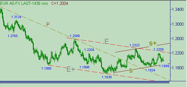 Восходящее движение между линиями Z и Z+ на рис. 3 можно обозвать как "коррекционная формация от снижения курса 1.2107(22/03/06)-1.1949(24/03/06), которое является последней нисходящей веткой в down-канале W-W+ на рис. 3" или "первая часть коррекционной формации от снижения курса в down-канале W-W+ на рис. 3". Разница понятна. Во втором случае следует искать повод для постановки позиции в модели продолжения коррекции, а в первом - искать технические подтверждения дальнейшего изменения курса (проще - поиск продолжения тренда путем возвращения к рис. 1 и к выделенным на нем каналам E-E+ и S-S+).