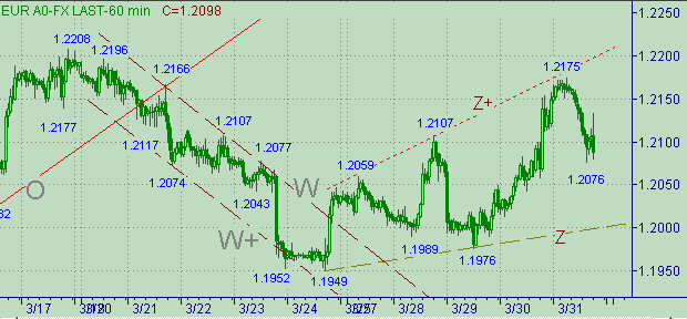Всё хорошее когда-нибудь заканчивается - подошла к окончанию и коррекционная формация с началом от 1.1949(24/03/06) от снижения курса в канале W-W+ на рис. 3. Сама коррекционная формация 1.1949(24/03/06)-1.2175(31/03/06) составила 226п. или 86% от длины нисходящего тренда. Если сомнения о потенциале коррекции отпали по факту самой коррекции, то сомнения относительно законченности восходящего движения с началом от 1.1976(29/03/06) (вторая up-ветка в росте курса вдоль линии Z на рис. 3) остаются. Понимать это модно таким образом, что в случае продолжения восходящего движения с началом от 1.1976(29/03/06) коррекционная формация плавно перейдет в up-тренд с началом от 1.1949(24/03/06). Для случая продолжения восходящего движения имеем следующий набор целевых интервалов: 1.2195-1.2205, 1.2255-1.2265, 1.2290-1.2320, 1.2390-1.2400, 1.2440-1.2460. От сегодняшнего минимума, равного 1.2076, "Быки" пытаются обозначить новый up-напор на позиции "Медведей".