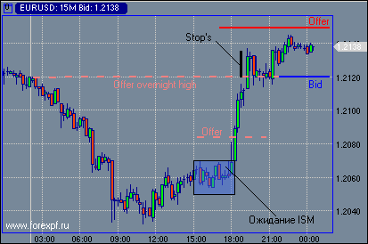 В ожидании публикации американских экономических данных курс пары евро/доллар консолидировался в диапазоне 1.2055/70 после более раннего тестирования суточных минимумов в области 1.2030. Мартовский индекс производственной активности ISM оказался хуже прогнозов экономистов. Разочарование участников рынка вылилось в последующие продажи американской валюты. Ближайшие офера в тот момент были расположены на 1.2085. При первом практически мгновенном тестировании они устояли, но со второй попытки были поглощены полностью, и курс пары продолжил восходящее движение до фигуры 1.2100. Она не задержала рост единой валюты, поскольку продажи от этого уровня наблюдались в Лондоне, поэтому к моменту возвращения курса к фигуре уже снизу вверх офера на 1.2100 не были найдены. Сохраняя высокие темпы восходящего движения курс евро/доллар поднялся до уровней открытия понедельника и новой торговой недели. Вот в области 1.2120 вновь можно было наблюдать продавцов, но они не удержали натиска быков по евро. Следом за поглощением оферов на 1.2120 были поглощены вышерасположенные стопы, что подбросило курс практически до 1.2137/40. Далее доллар вернулся к уровню открытия торговой недели на 1.2120, но здесь появились новые покупатели. В настоящий момент биды на 1.2120 не поглощены. Они закрывают нижнюю сторону. Офера по-прежнему базируются на 1.2145/50. ProFinance.Ru - Forex News / Новости Форекс