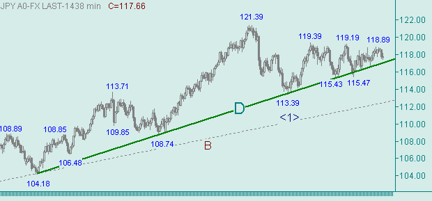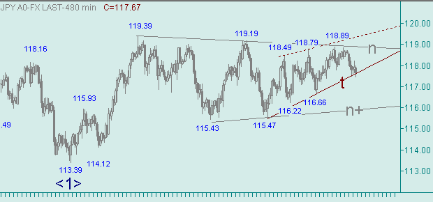 Ожидаемого снижения до 116.75 в рамках коррекции от 116.66(5/04/06)-118.89(11/04/06) не последовало, поэтому позиция снимается с рассмотрения. Вне рынка.