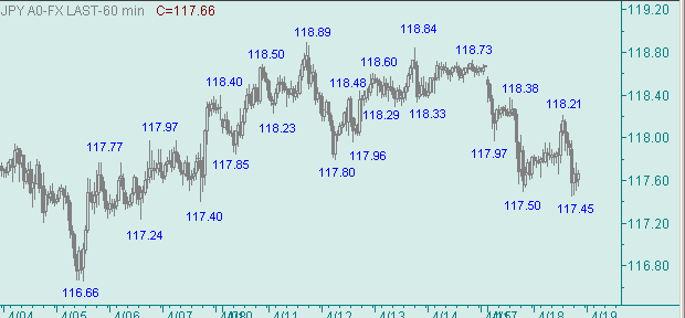 Open=118.55, High=118.58, Low=117.50, Close= 117.78.