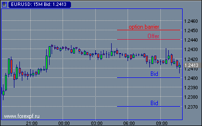 На американской сессии во вторник отход от максимумов в области 1.2435/40 обеспечили позитивные американские данные. Они же оказывали поддержку американской валюте и на азиатской сессии в среду. В ходе сегодняшних торгов доллар восстановился от 1.2435 до 1.2405. Некоторое количество бидов защищает фигуру 1.2400, но основной спрос на евро расположен на 1.2370/65. Офера сохраняют свое местоположение на 1.2440/50. Они защищают барьерный опцион на 1.2450. Стопы расположены выше 1.2455. Их поглощение может быстро привести к тестированию оферов на 1.2495, которые закрывают очередной опционный барьер на 1.2500. ProFinance.Ru - Forex News / Новости Форекс