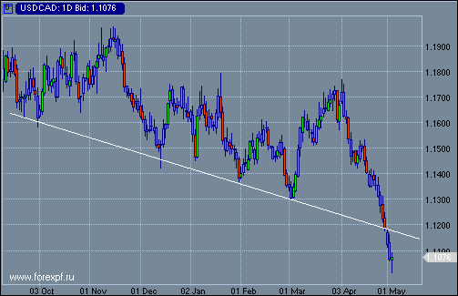 На торгах в среду канадский доллар достиг новых рекордных за 28 лет уровней по отношению к американской валюте, протестировав область 1.1015. Однако в завершении торгового дня loonie незначительно ослабился по отношению к уровня открытия. Золото приостановило рост, а коррекция в ценах на нефть оказала давление на канадскую валюту. Цены на нефть упали почти на 2 доллара после публикации правительственного отчета, показавшего рост бензиновых запасов, что наблюдается впервые за 2 месяца. Экономический календарь США оказался позитивным для американской валюты, что также оказало давление на loonie с внешней стороны. Фабричные заказы выросли и превысили прогнозы. Состояние непроизводственного сектора американской экономики, согласно апрельскому ISM, также является впечатляющим. Технически курс доллар/канада испытывает к склонность к возвращению и тестированию в качестве сопротивления ранее пробитой лини тренда. Это движение является необходимым в рамках перепозиционирования участников рынка и фиксации избыточной части коротких позиций. ProFinance.Ru - Forex News / Новости Форекс