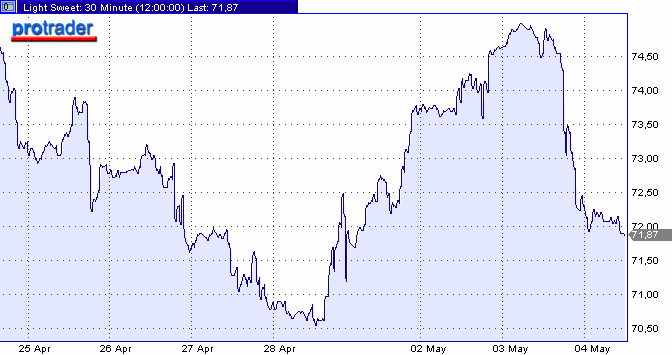 Цена на нефть упала почти на $ 3 на торгах в среду и продолжила снижаться в четверг на торгах в Азии и Европе. Аналитики связывают падение с ростом запасов сырья в США. Как сообщило минэнерго, запасы нефти в США за неделю, завершившуюся 28 апреля 2006 года, выросли на 1.7 миллиона баррелей до 346.7 миллиона, запасы бензина - на 2.1 миллиона баррелей до 202.7 миллиона. "Последний доклад EIA может стать признаком того, что мы действительно перешли на новый этап в сфере нефтепродуктов", - сказал Фил Флинн из Alaron Trading. Дебаты в отношении ядерной программы Ирана останутся главной темой на рынке после того, как страны Запада в среду представили проект резолюции в Совет безопасности ООН, в котором выражены требования к Тегерану приостановить программу обогащения урана. К 12.15 мск июньские фьючерсы на американскую легкую нефть котируются на $71.85 за баррель после тестирования в среду уровня $ 75.00 за баррель. Аналогичные контракты на индикативный сорт Brent торгуются на $72.25 за баррель.