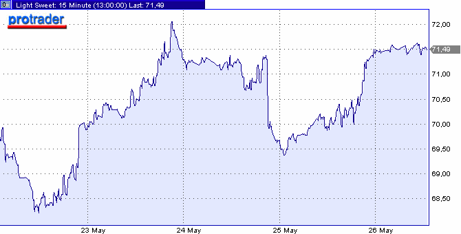 Рост цен на нефть возобновился в четверг и продолжается более умеренными темпами в пятницу утром в Европе, поскольку игроки закрывают короткие позиции перед тремя выходными днями, пишет Reuters. В понедельник США отмечают День поминовения. В Британии также в понедельник будет выходным днем. Участники рынка говорят, что он остается непредсказуемым, и крупнейшие игроки - фонды - могут двинуть его в любую сторону. Также на цены будет влиять ситуация на рынках основных металлов и золота, которые в последнее время колеблются синхронно с нефтяным, пишет агентство. Очевидно, причиной возобновления спроса на сырье стали данные о сильном росте американской экономики в первом квартале 2006 года. По уточненным данным ВВП США вырос в первом квартале на 5.3 %против ранее объявленной первой оценки роста на 4.8 %. Росту цен на нефть также способствовали сохраняющиеся противоречия вокруг ядерного досье Ирана, четвертого по величине экспортера нефти в мире. Иран продолжает настаивать на проведении двусторонних переговоров с США, в то время как Вашингтон настаивает на продолжении многосторонних консультаций. Как сообщил в четверг пресс-секретарь Государственного департамента США Шон Маккормак, министры иностранных дел ведущих держав мира встретятся в конце следующей недели в Европе для завершения работы над пакетом сдерживающих мер, направленного на решение иранской ядерной программы.